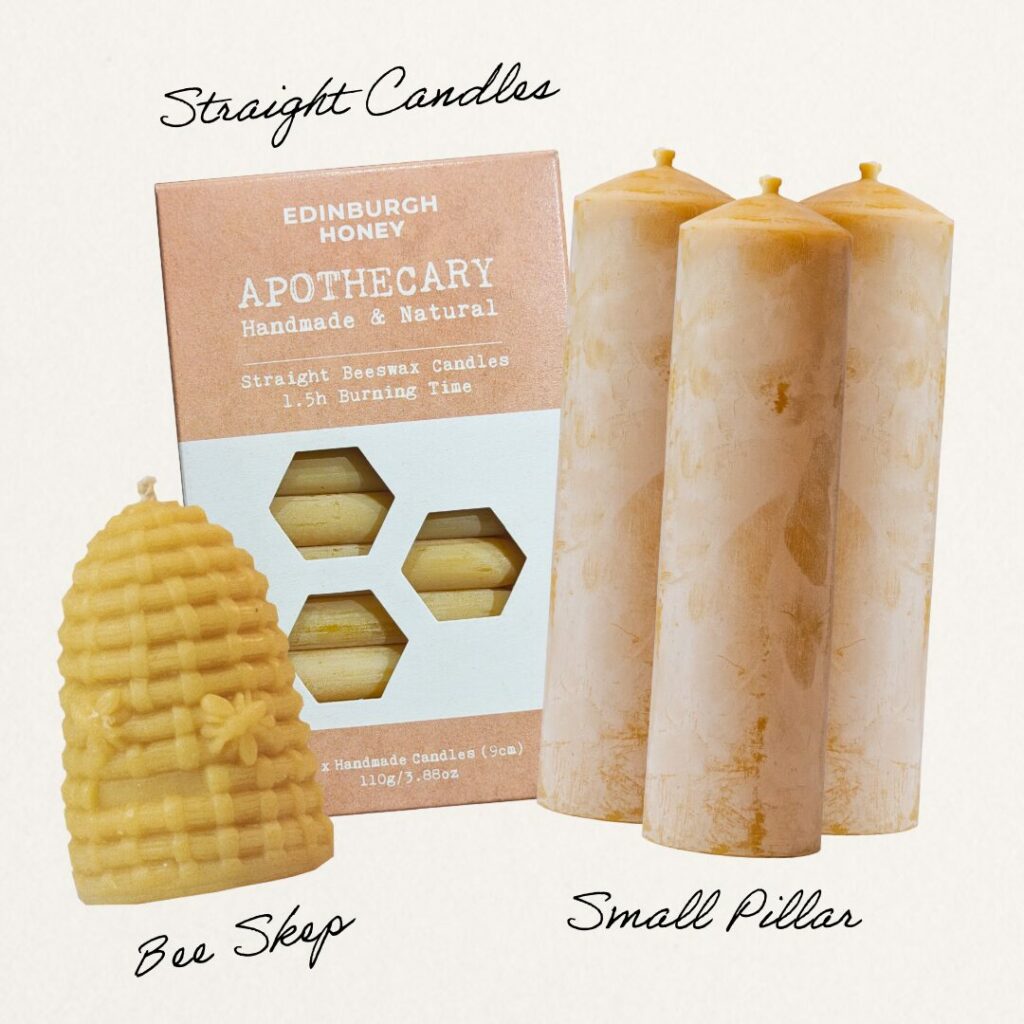 Our beeswax candles are made from natural beeswax from our own hives.